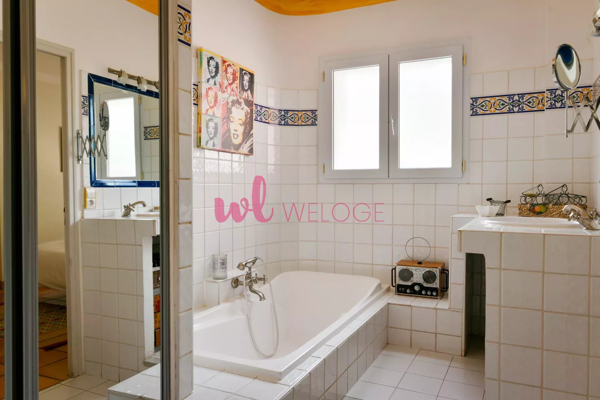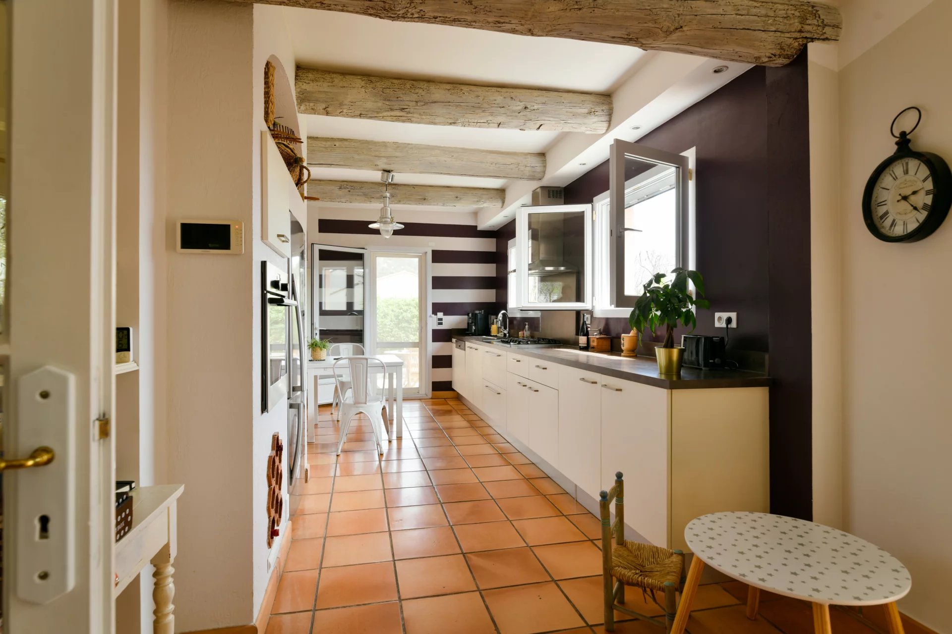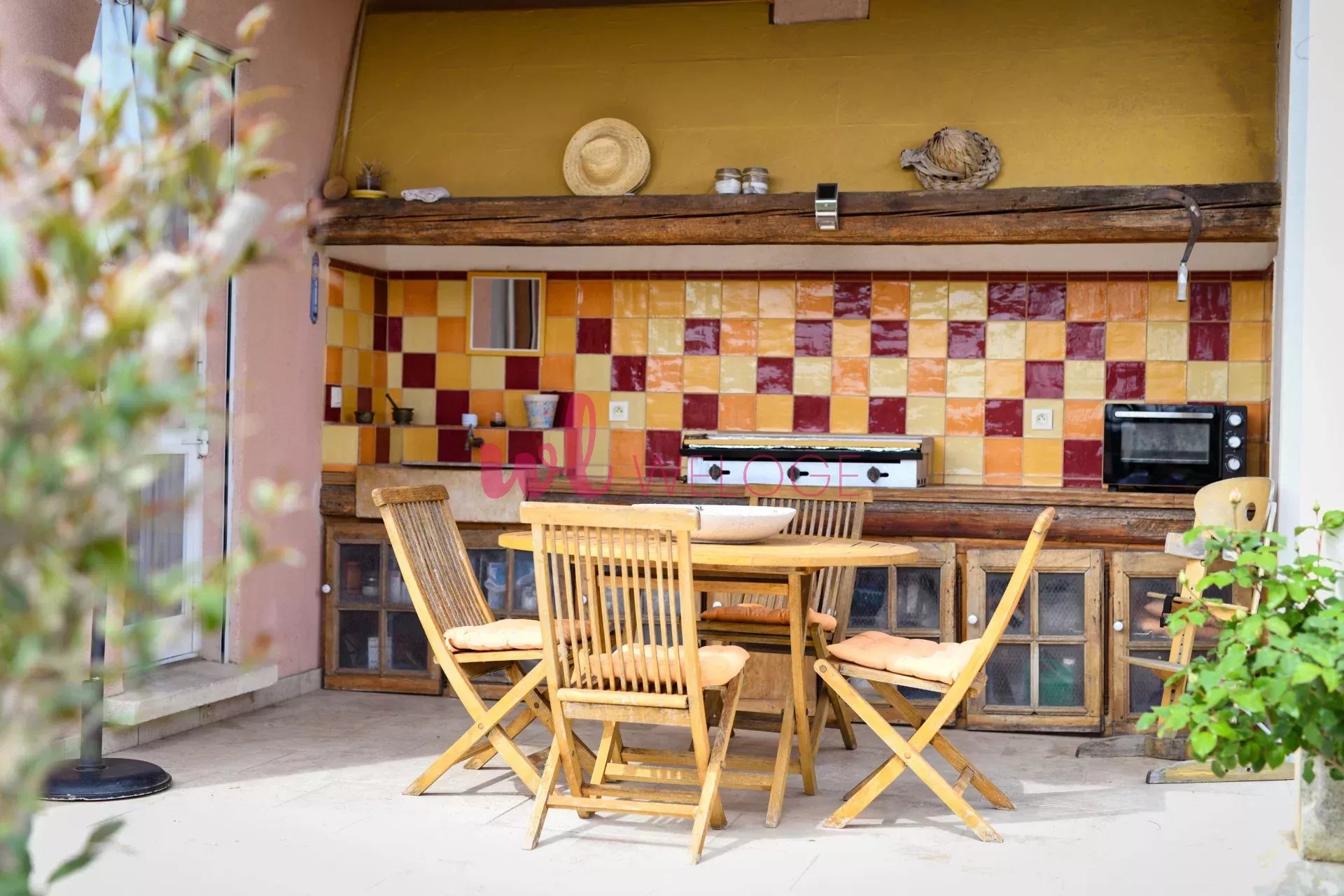 À l’extérieur, vous trouverez l’espace piscine clos, à l’abri des regards, un jardin arboré et une cuisine d’été.
