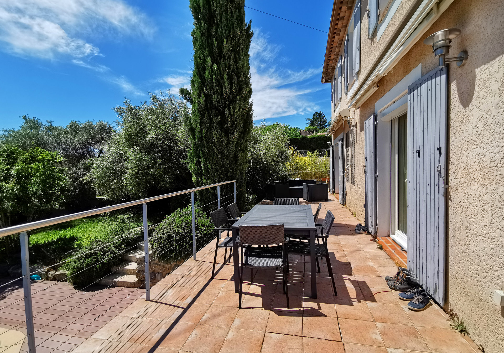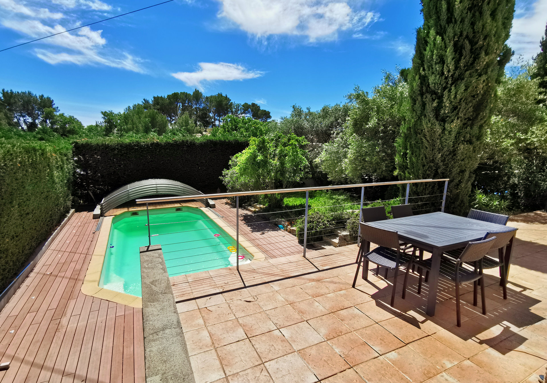 VENDU Votre agent Weloge vous propose à la vente une maison fonctionnelle au calme de 187 m2 édifiée sur un terrain de 1000 m2 avec piscine sécurisée, située dans un quartier prisé de la Bouilladisse et proche des commodités.
