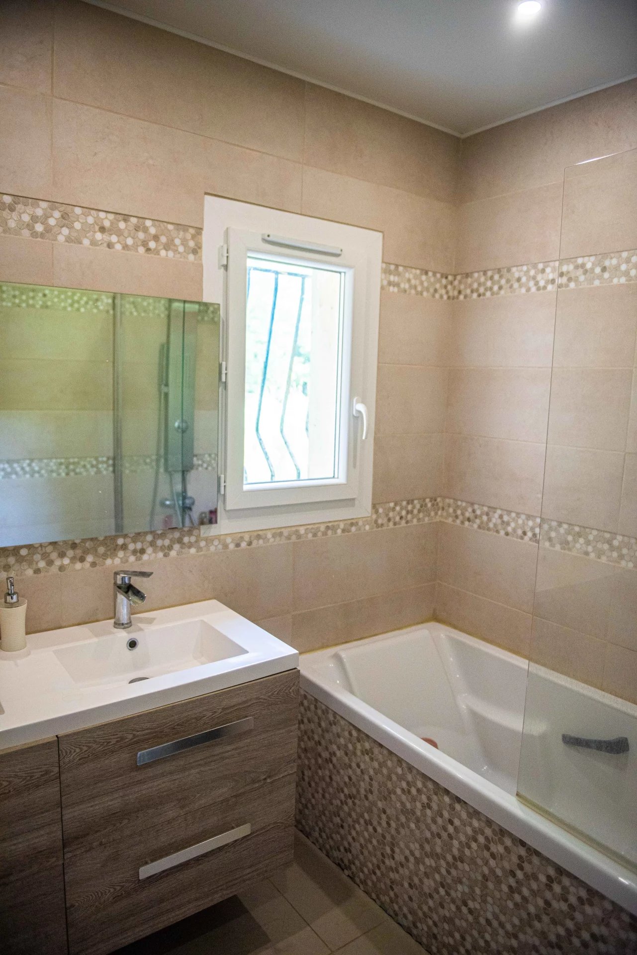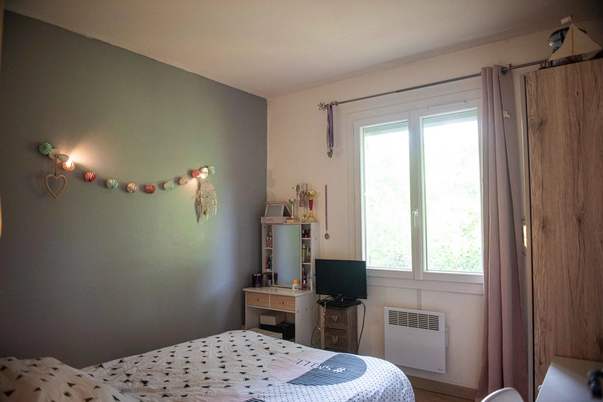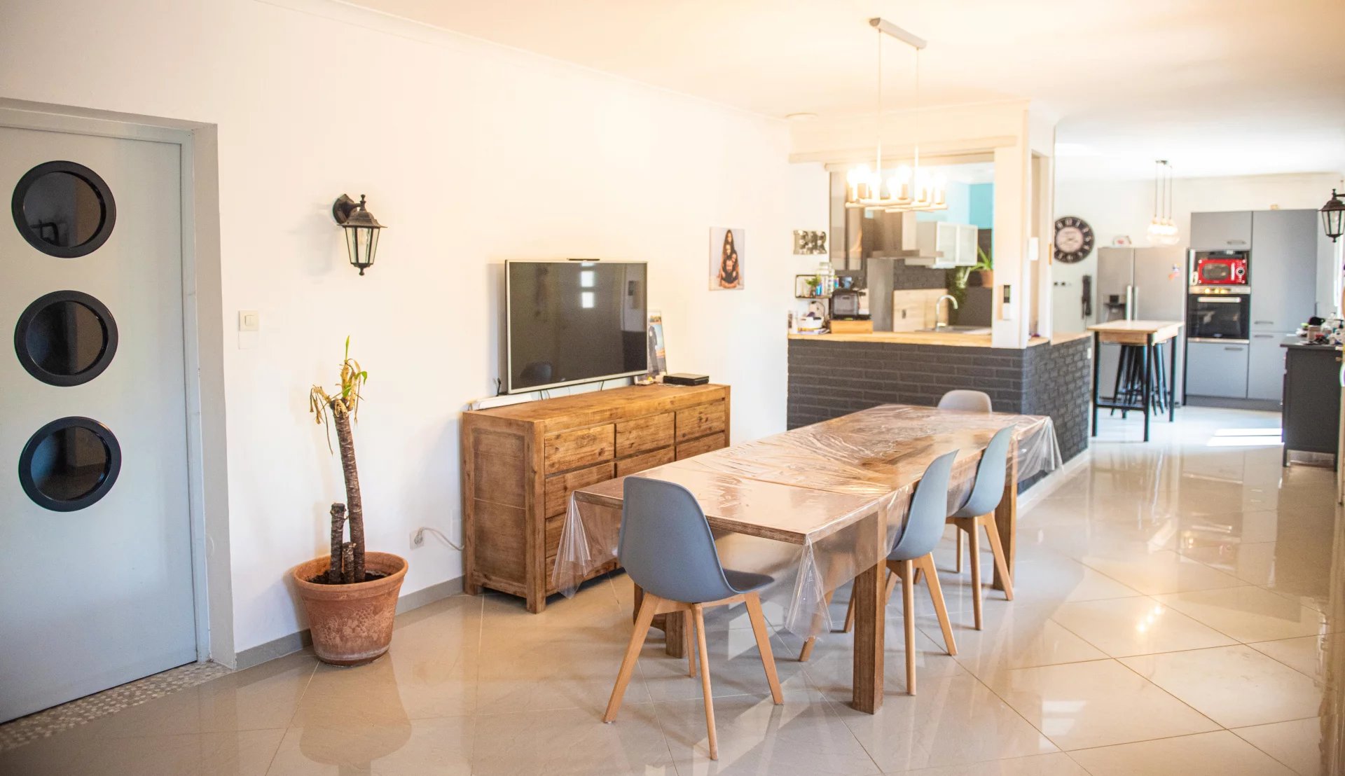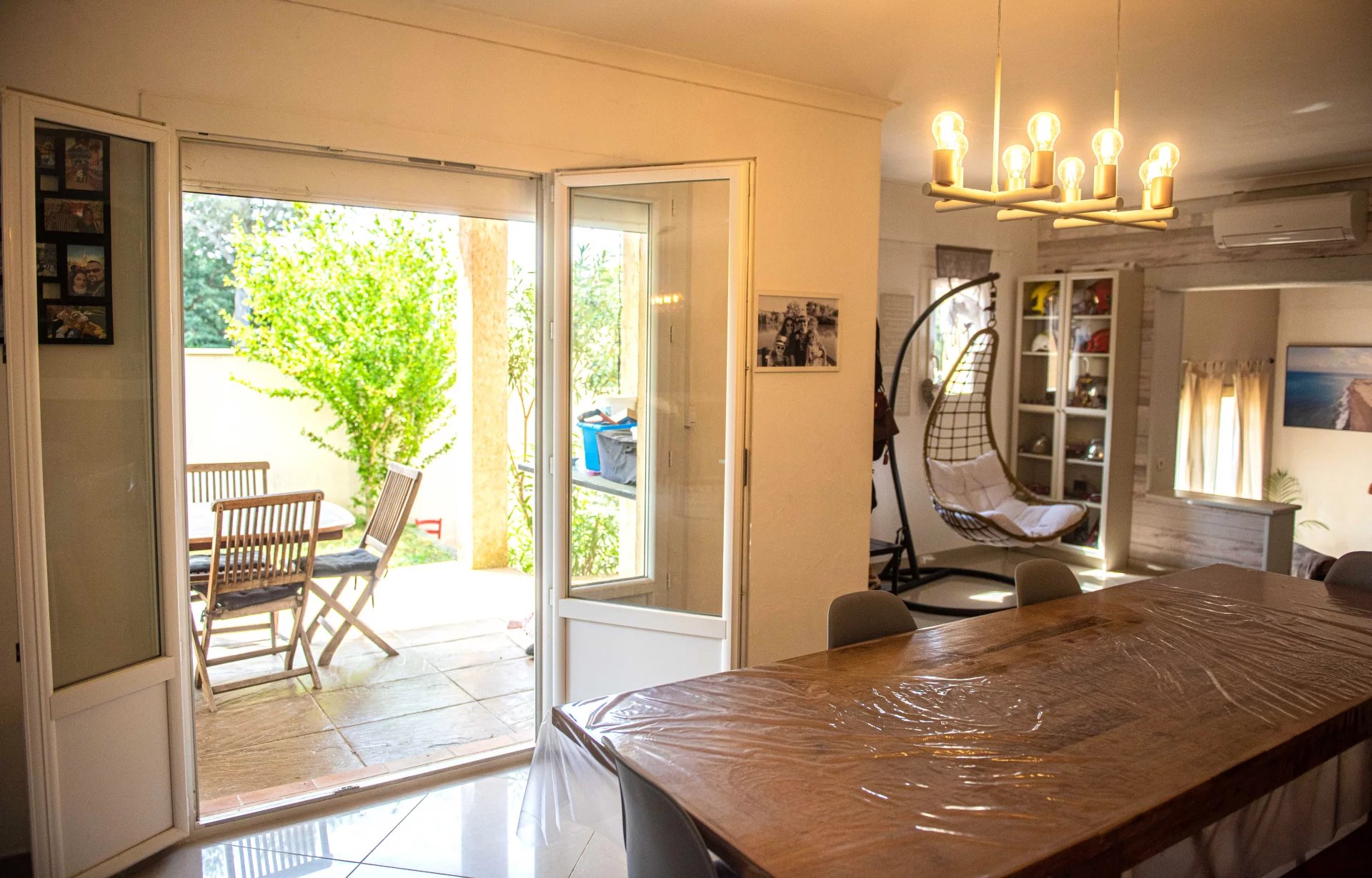Double vitrage, volets électriques avec moustiquaires, cheminée insert, climatisation, fibre, construction en briques.