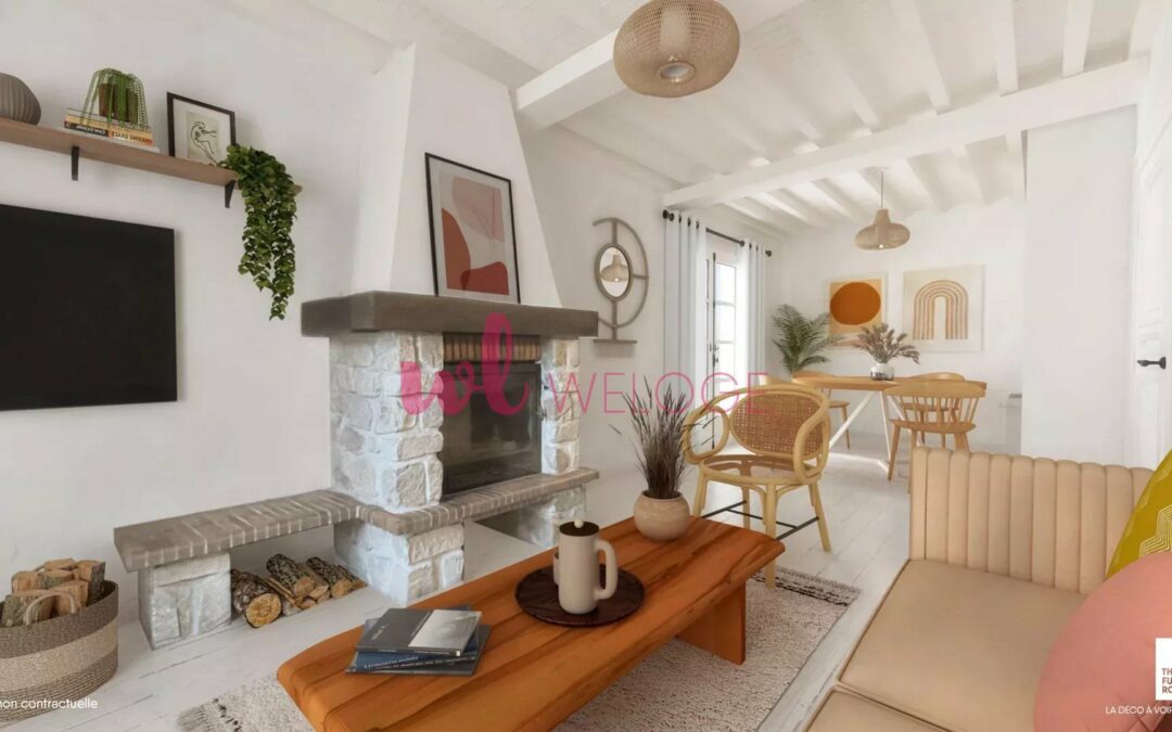 Elle se compose au RDC d’un grand salon équipé d’une belle cheminée et d’une vaste cuisine salle à manger