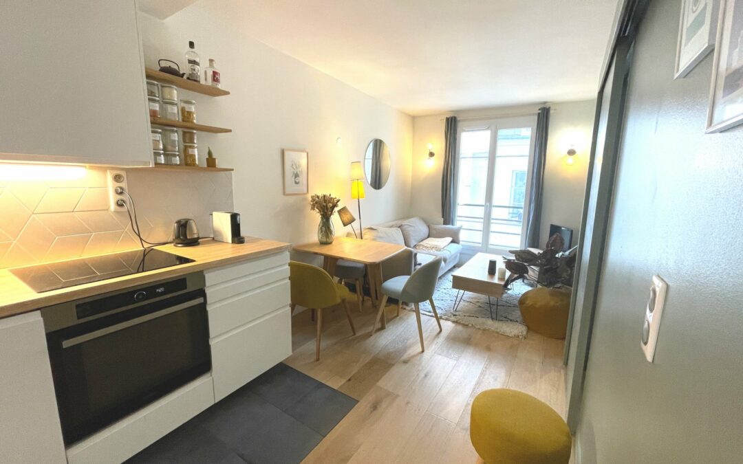 Metro Faubourg St Denis. Au 3e étage d’un immeuble ancien d’une copropriété bien entretenue avec gardienne, charmant 2 pièces de 29,37m2 loi Carrez sur cour au calme absolu. Il comprend un séjour, une cuisine ouverte équipée, une chambre avec rangements, un placard et une salle de bains. Totalement rénové en 2019.