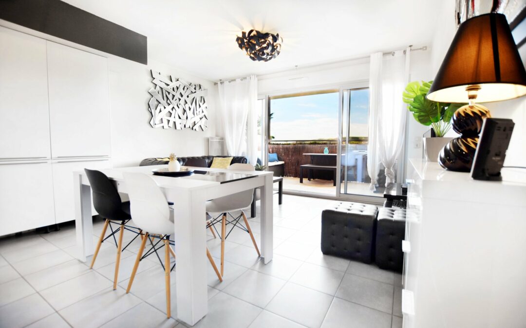 votre agent Weloge vous propose à la vente , un beau T2 lumineux,de 41.85 m2 dans une petite résidence sécurisée, de quatre étages comprenant 36 lots . Il se compose d’une cuisine ouverte sur le salon, salle à manger donnant sur une terrasse de 8 m2 avec une vue dégagée sur le pic de l’étoile. D’un hall d’entrée , d’une salle de douche avec toilette, d’une chambre avec placard. Les charges trimestrielles sont de 250 euros.Et d’une place de parking vendu avec l’appartement.