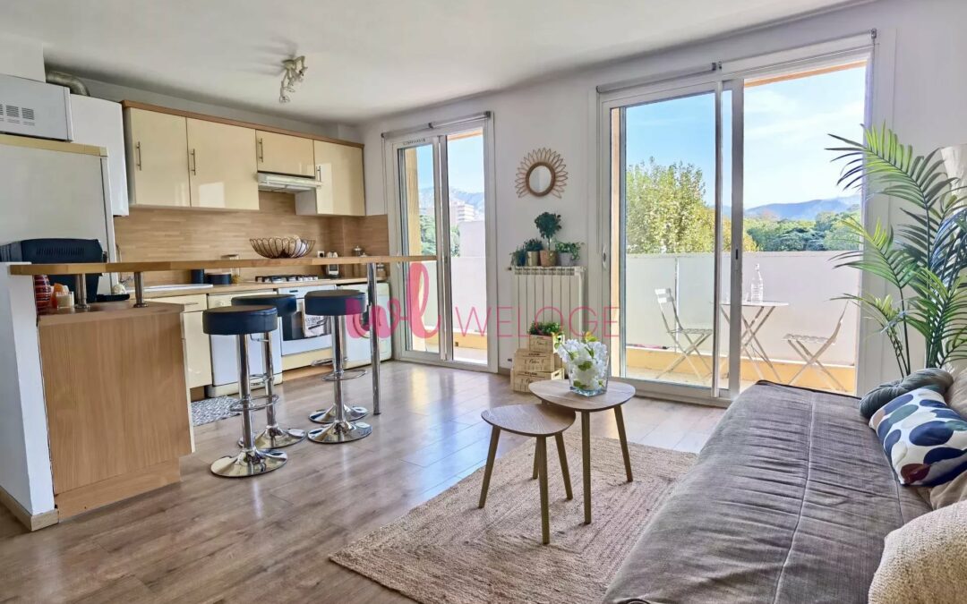 Vous serez séduits par son lumineux séjour/cuisine de 24 m² avec deux portes coulissantes donnant sur un long balcon, deux chambres disposants d’un placard de rangement chacune, d’une salle d’eau, toilettes indépendantes et un dégagement avec placard de rangement.