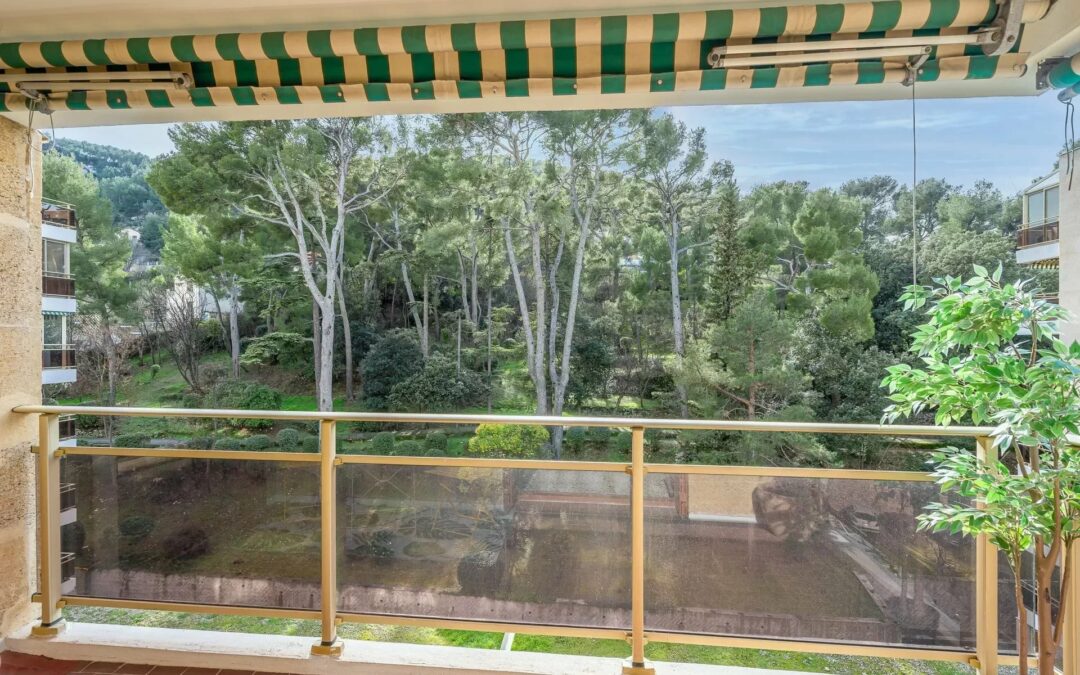 Bien orienté du côté collines avec une agréable TERRASSE vue dégagée sur les arbres de la résidence, cet appartement traversant, en étage élevé est baigné de lumière. Ses pièces de vie bien disposées et les grands rangements sont des atouts.