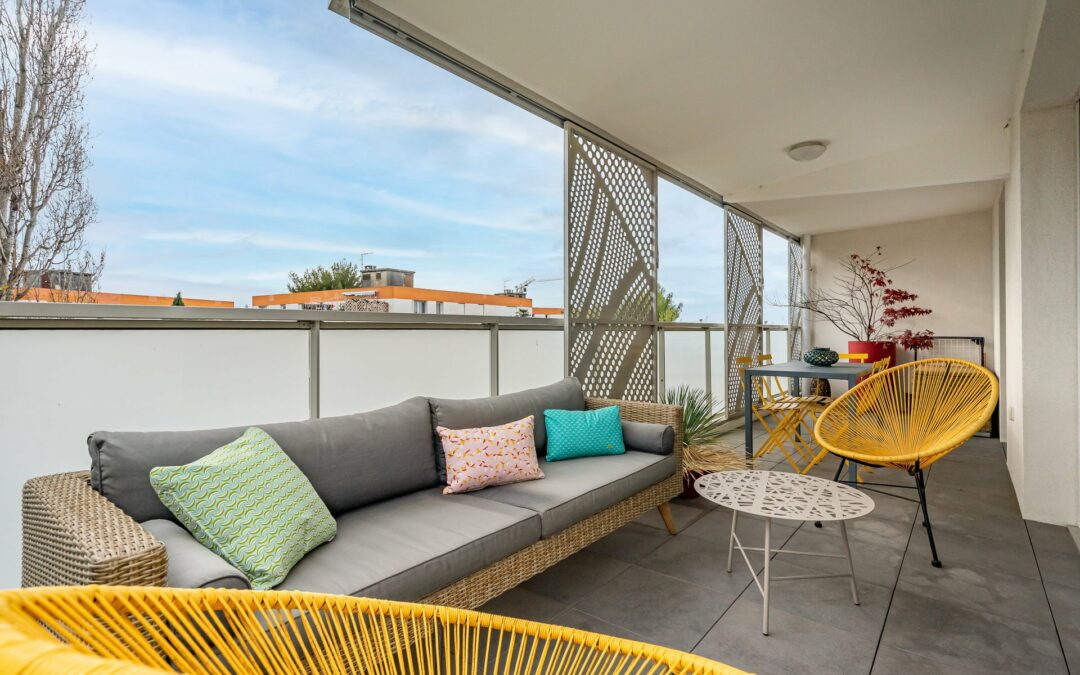 Cet appartement au calme très bien agencé propose une lumineuse pièce de vie exposée Sud dotée d’une sublime cuisine haut de gamme entièrement équipée, deux chambres, chacune équipée de placards sur mesure et une salle d’eau avec douche à l’italienne.