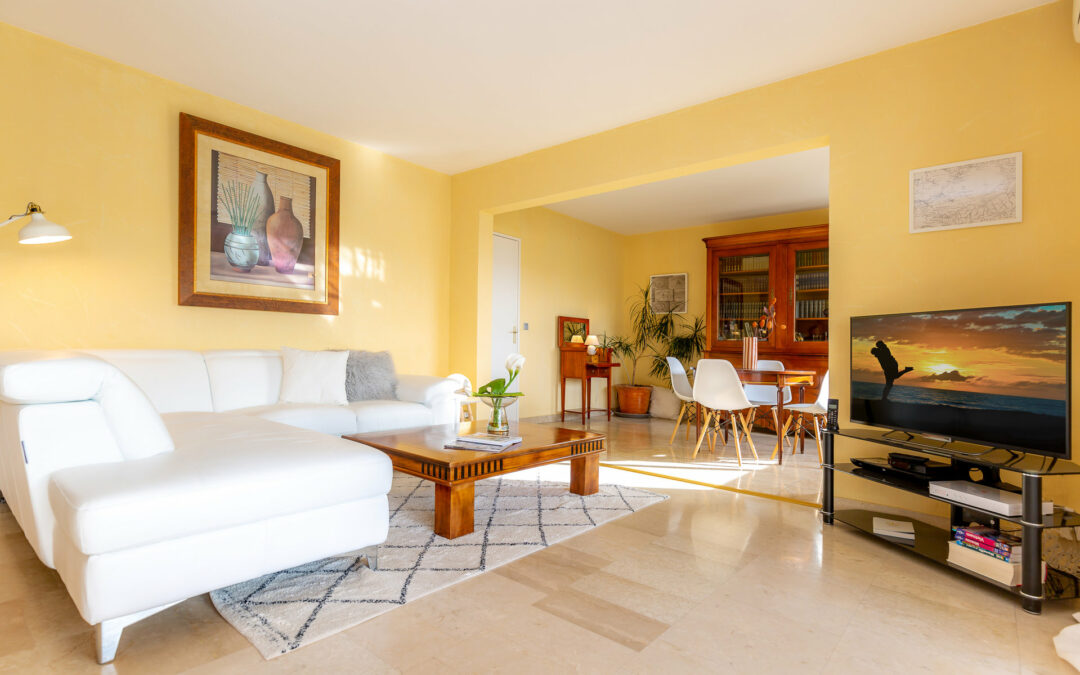 Votre agent WeLoge vous propose à la vente en exclusivité dans le 9ème arrondissement dans une résidence avec piscine. Gardien 24 heures sur 24, 7 jours sur 7. Très bel appartement de 4 pièces d’une superficie de 107 m2 situé au 3ème étage avec terrasse exposé Sud Ouest et place de parking. L’appartement se compose d’un séjour salon de 44 m2, d’une cuisine équipée avec cellier, de deux chambres, (possibilité de faire une troisième chambre très facilement), deux dressing, une salle d’eau avec toilettes, une deuxième salle d’eau avec toilettes séparées. A proximité des commerces, écoles et transports en commun. Climatisation, cave. Bien en copropriété de 350 lots. Charges annuelles 4200€. Honoraires à la charge du vendeur.