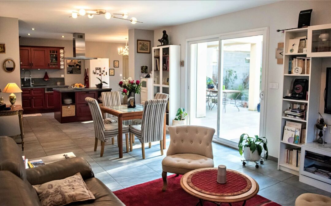 Elle se compose d’une cuisine équipée, d’un séjour très lumineux ouvrant sur une terrasse, 4 chambres, ( dont 2 à l’étage) 2 salles d’eau, 2 WC, un cellier et garage.