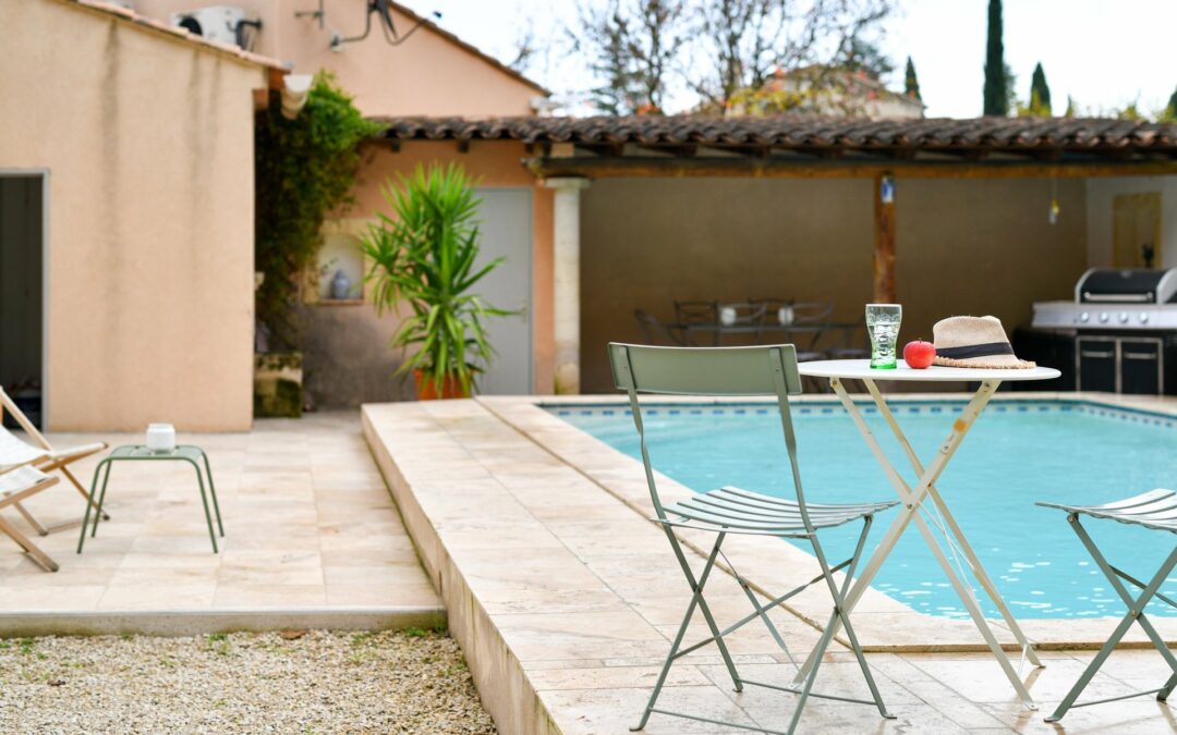 La piscine et son pool-house bénéficient d’une exposition plein sud à l’abri des regards. La terrasse et les abords de la piscine sont de matériaux de belle facture.
