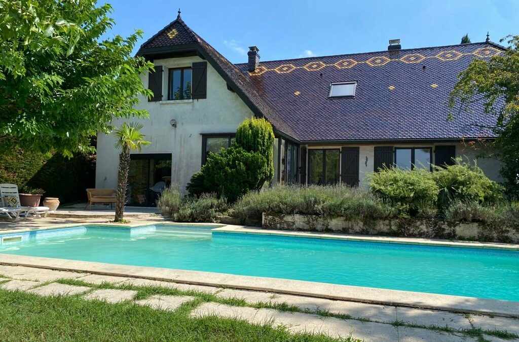 Sa belle terrasse avec piscine intégrée vous séduira. Vous pourrez profiter du soleil toute journée grâce à son exposition Sud-Ouest et de la vue imprenable sur la campagne environnante.